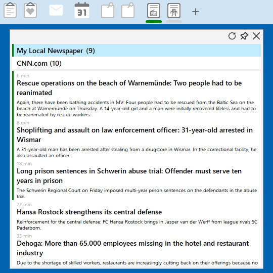 Do you always want to know the latest news from your city, your country, the world, your favorite sports club, or the markets? We can help you do this. Or the latest celebrity gossip? Or do you prefer the latest in AI? However, you can pin any RSS-based newsfeed to the assistant bar with the newsfeed quickie.