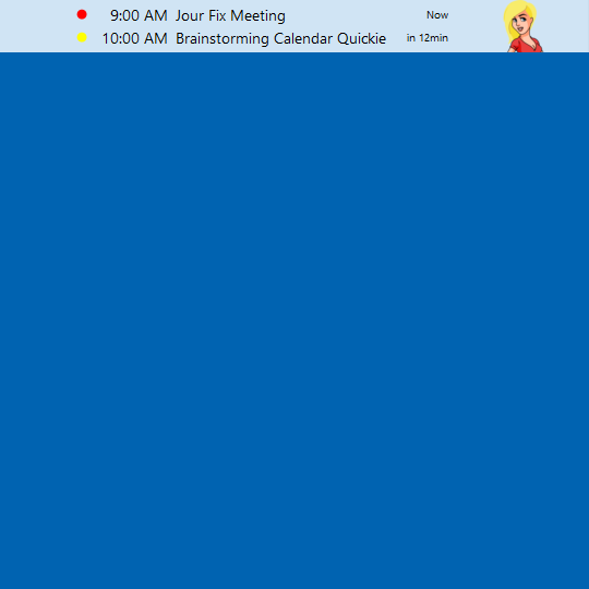Never again sneak into a meeting that has already started. With your personal calendar announcement board you stay up to date with your next appointments. Whether you are in a full-screen video call, working in a desktop application, or browsing the web, the assistant bar will always be visible.