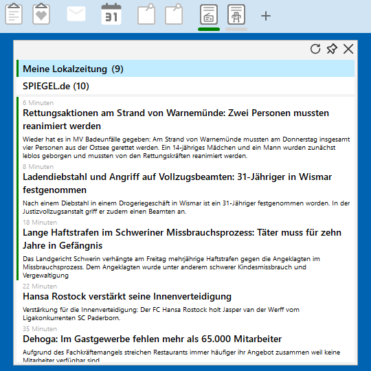 Möchtest du immer die neuesten Nachrichten aus deiner Stadt, deinem Lande, der Welt, deinem Lieblingssportverein oder der Börsen druckfrisch auf den Tisch bekommen? Wir können dir dabei helfen. Oder den neuesten Klatsch und Tratsch von Stars und Sternchen? Oder dann doch lieber die neuesten Nachrichten zur KI? Wie auch immer, du kannst jeden RSS-basierten Newsfeed mit dem Newsfeed-Quickie an die Assistentenleiste anpinnen.